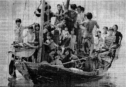 1965. Bình Định. Người mẹ và bọn trẻ vượt sông, thoát khỏi lửa đạn. Tác giả Kyoichi Savada